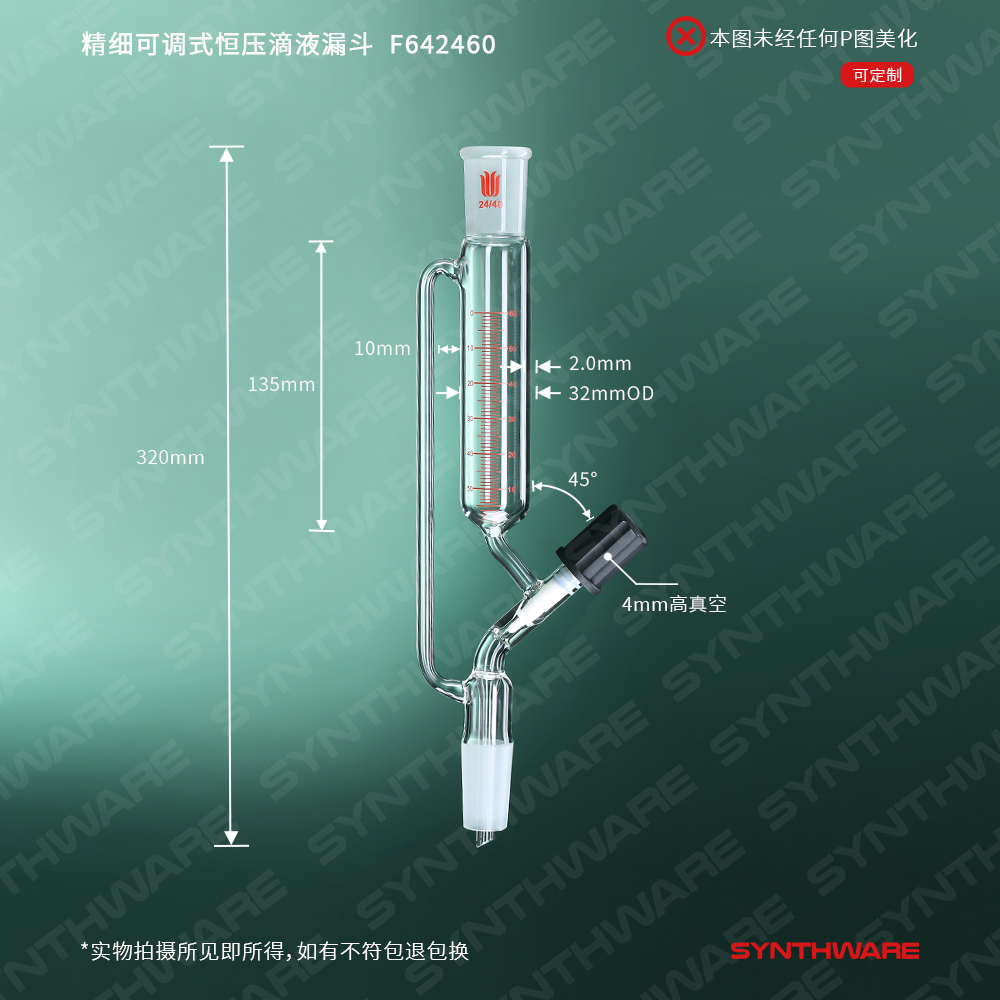 精细可调式恒压滴液漏斗,高真空阀,60ml,24/40 F642460