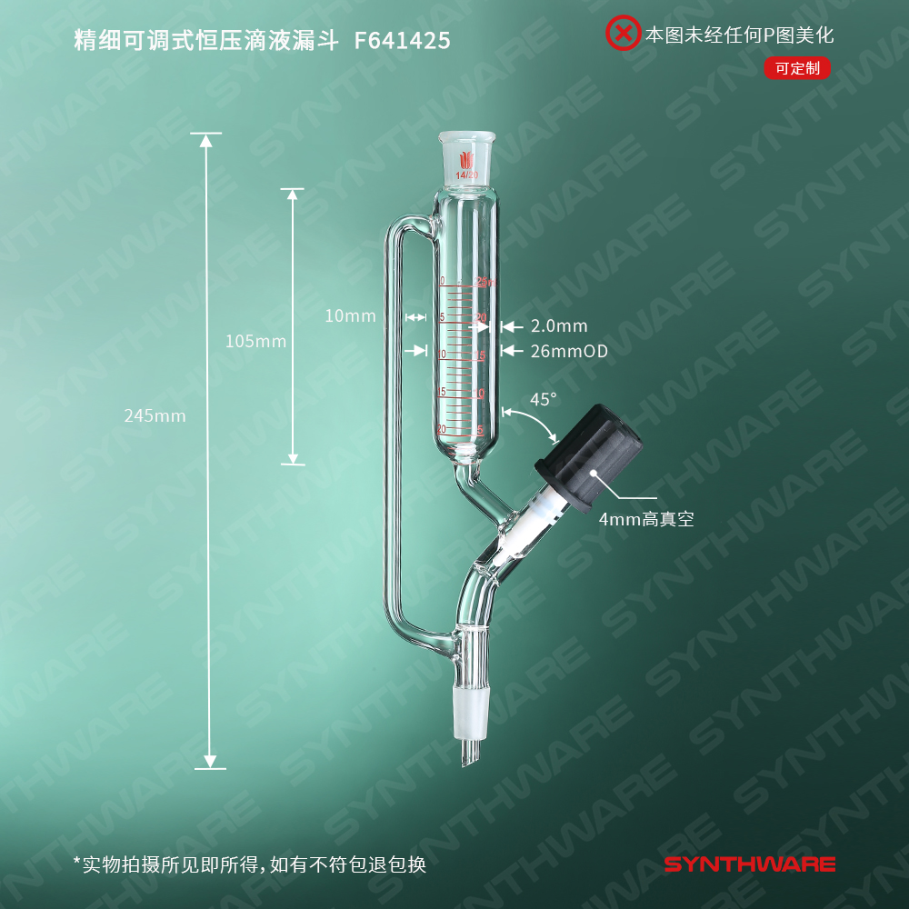 精细可调式恒压滴液漏斗,高真空阀,25ml,14/20 F641425