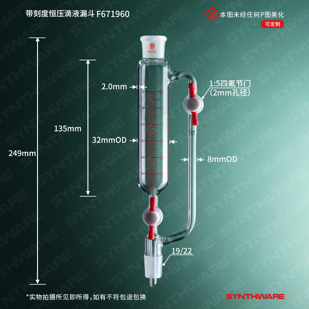 带刻度恒压滴液漏斗,双四氟节门,60ml,19/22 F671960