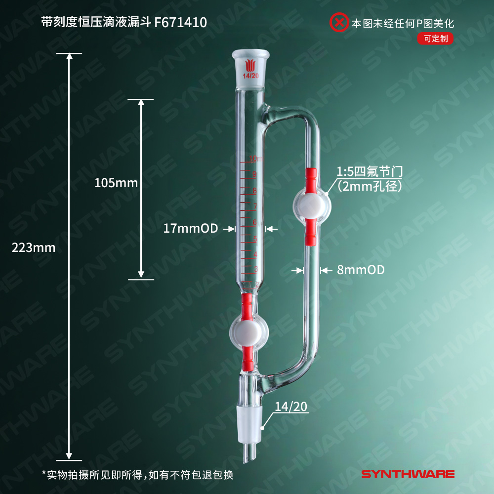 带刻度恒压滴液漏斗,双四氟节门,10ml,14/20 F671410