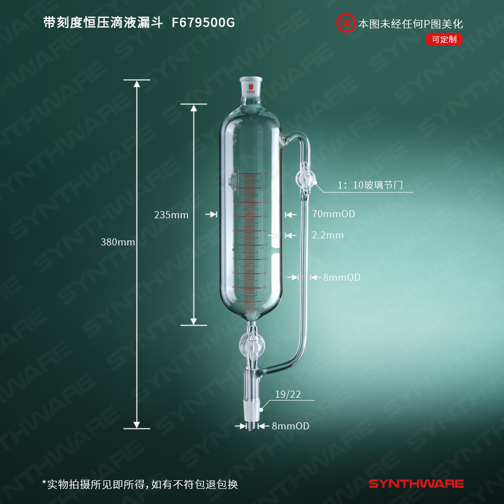带刻度恒压滴液漏斗,双玻璃节门,60ml,19/22 F671960G