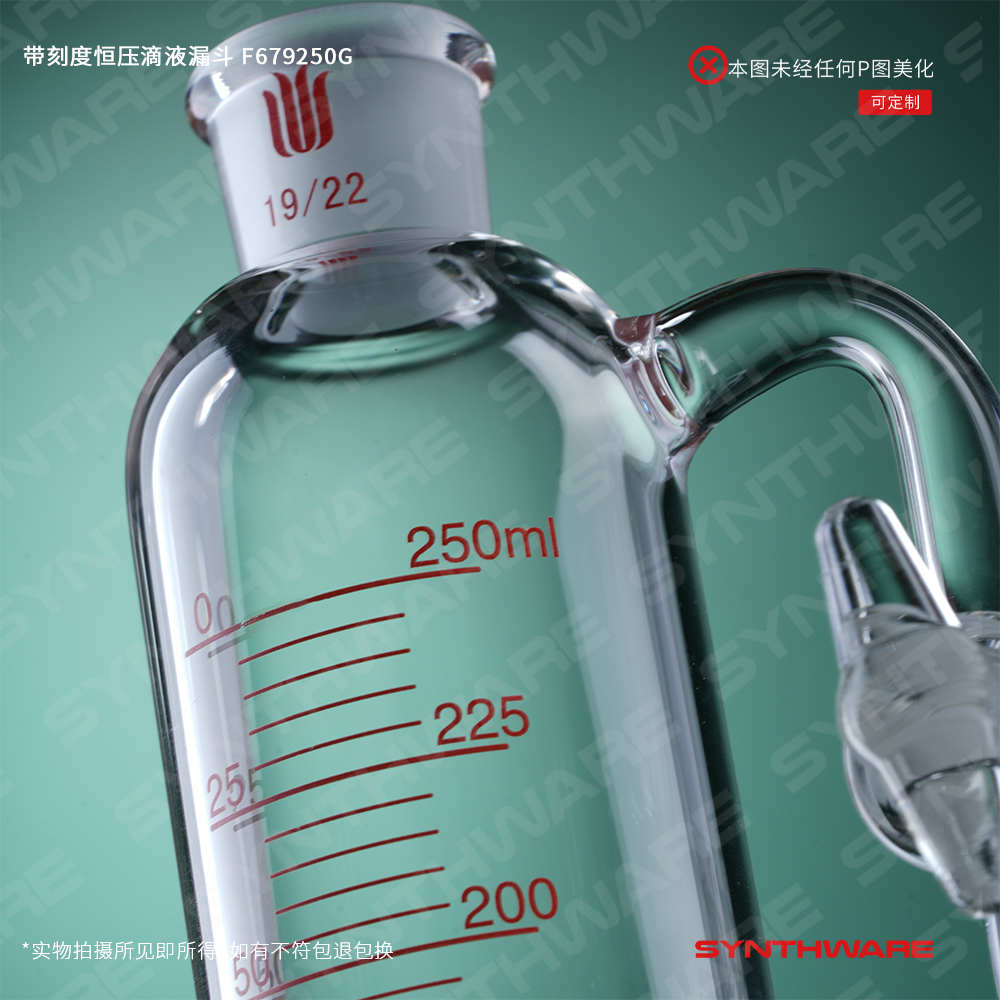 带刻度恒压滴液漏斗,双玻璃节门,250ml,19/22 F679250G