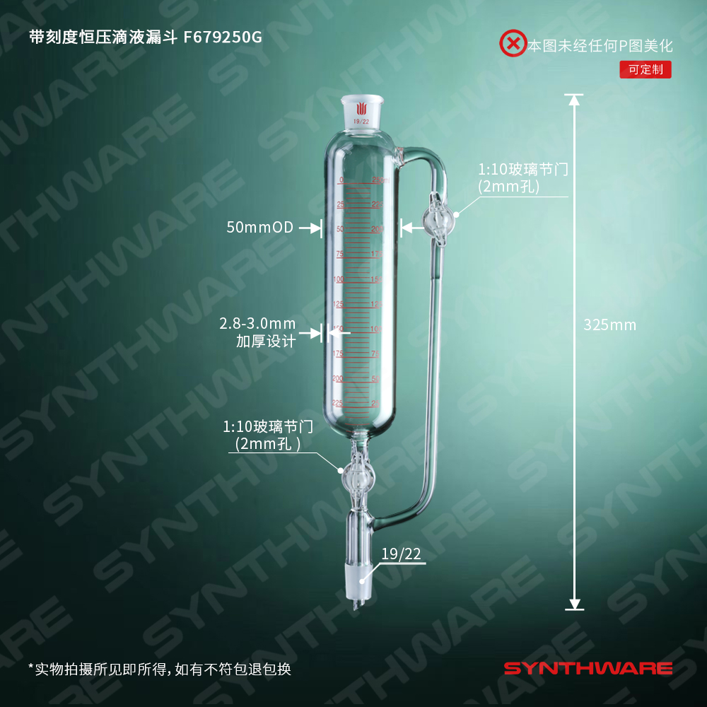 带刻度恒压滴液漏斗,双玻璃节门,60ml,19/22 F671960G