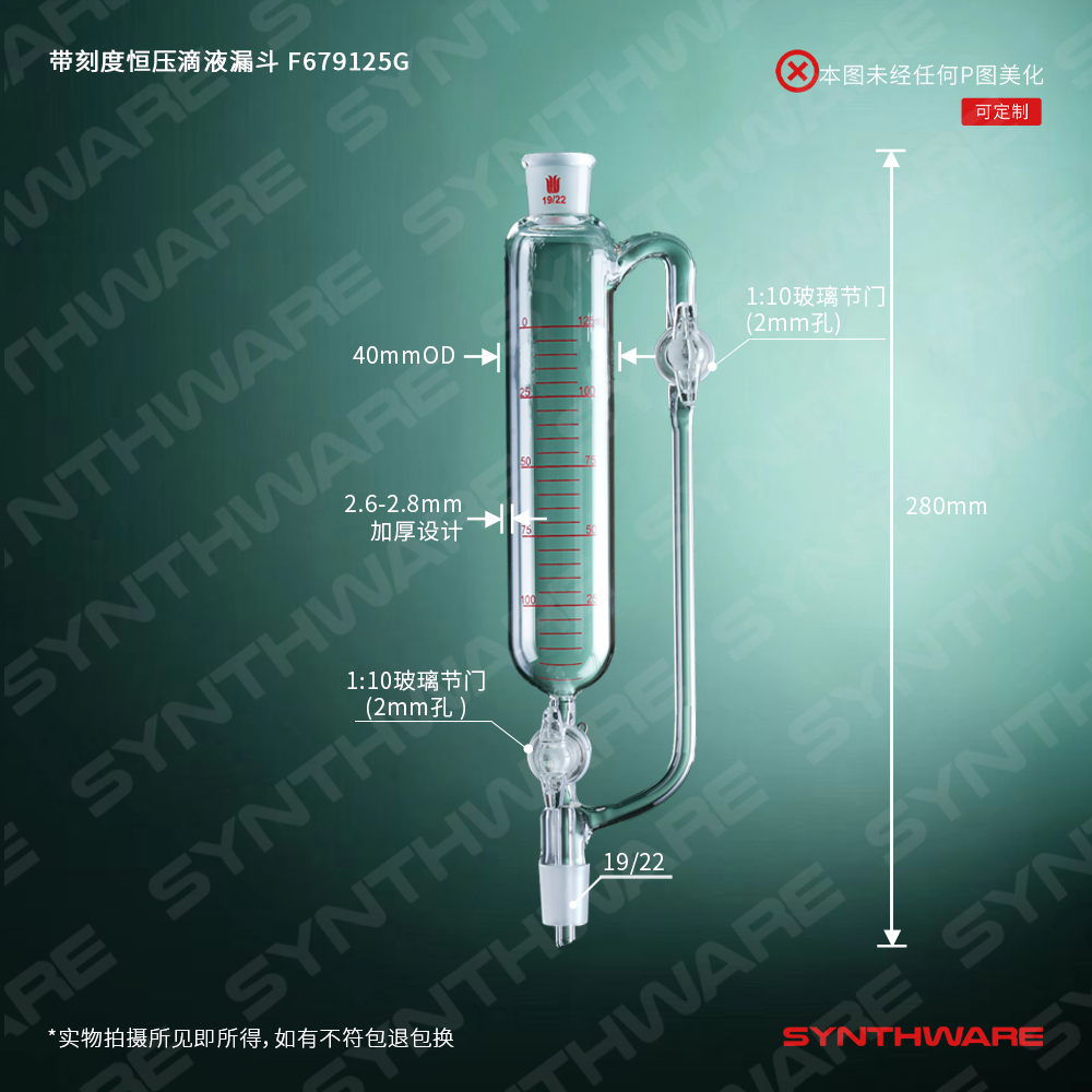 带刻度恒压滴液漏斗,双玻璃节门,125ml,19/22 F679125G
