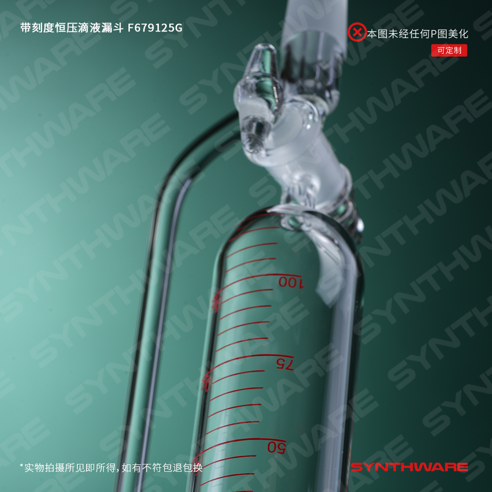 带刻度恒压滴液漏斗,双玻璃节门,125ml,24/40 F674125G