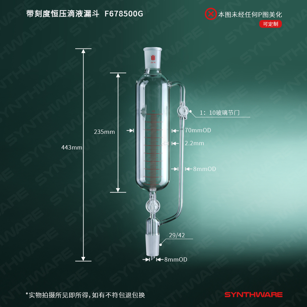 带刻度恒压滴液漏斗,双玻璃节门,25ml,19/22 F671925G