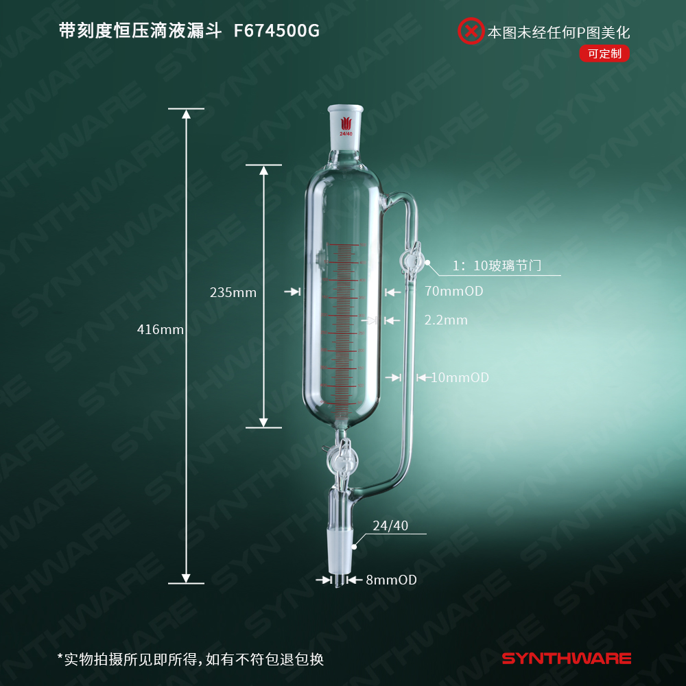 带刻度恒压滴液漏斗,双玻璃节门,25ml,19/22 F671925G
