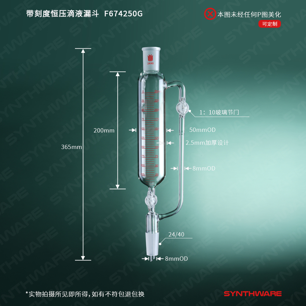 带刻度恒压滴液漏斗,双玻璃节门,25ml,19/22 F671925G