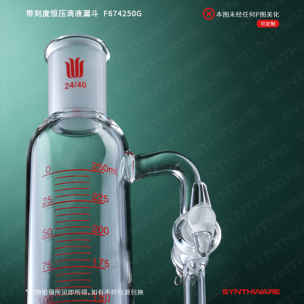 带刻度恒压滴液漏斗,双玻璃节门,250ml,24/40 F674250G