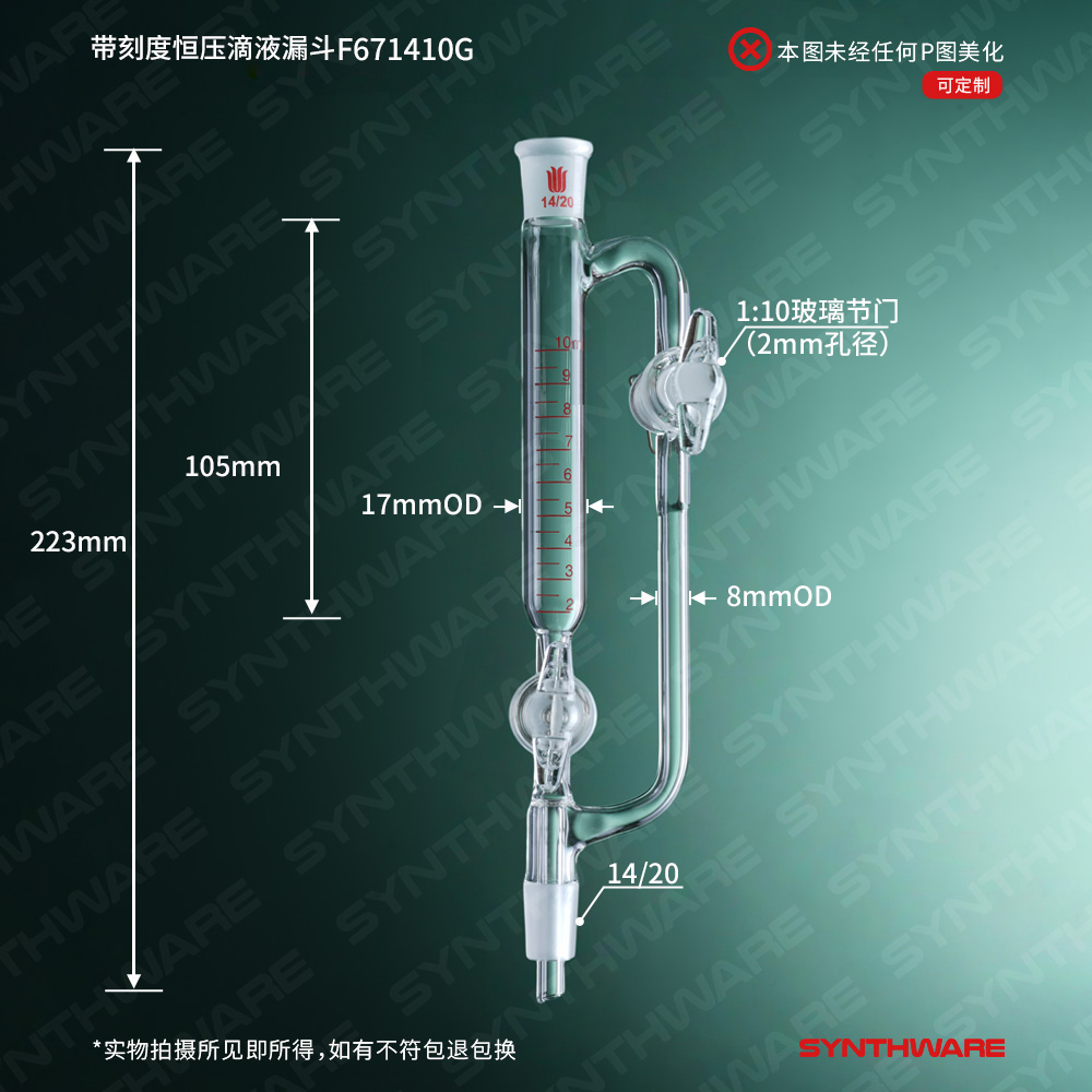 带刻度恒压滴液漏斗,双玻璃节门,10ml,14/20 F671410G