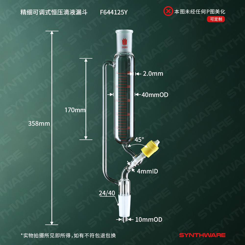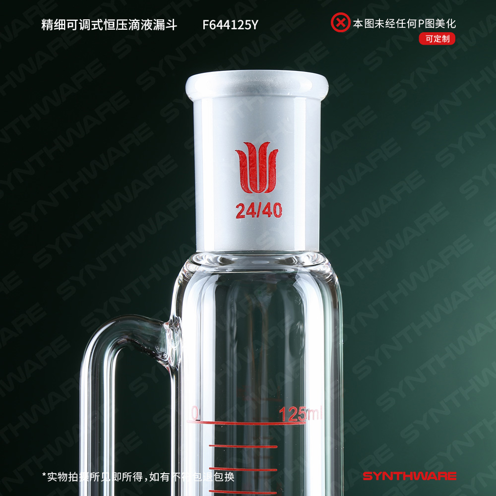精细可调式恒压滴液漏斗,新型4mm高真空阀,125ml,24/40 F644125Y