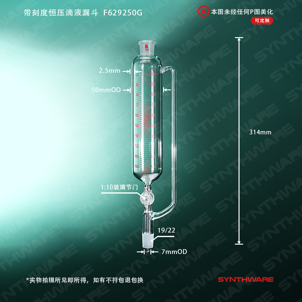 带刻度恒压滴液漏斗,玻璃节门,250ml,19/22 F629250G