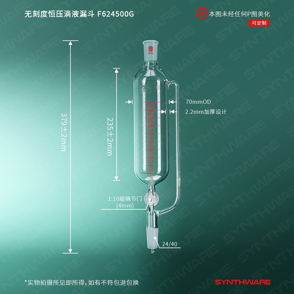 带刻度恒压滴液漏斗,玻璃节门,500ml,24/40 F624500G
