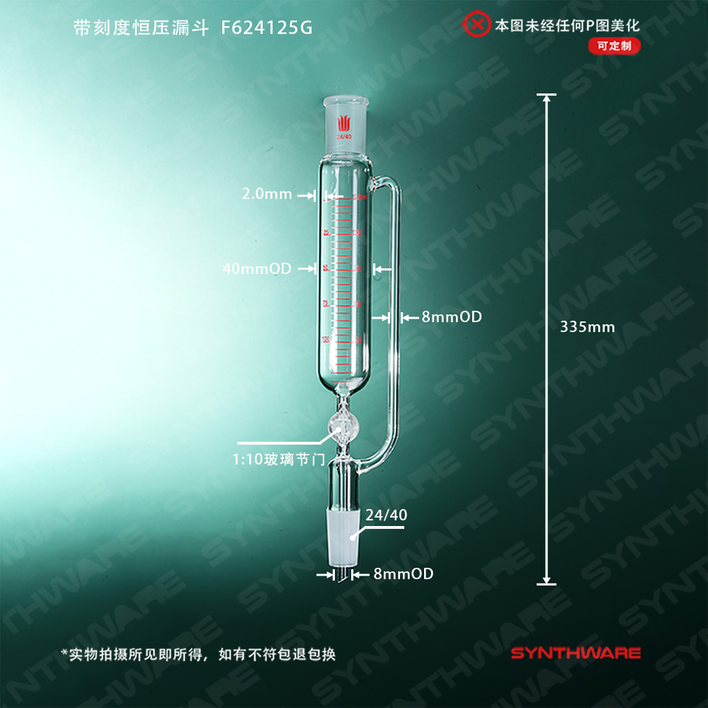 带刻度恒压滴液漏斗,玻璃节门,125ml,24/40 F624125G