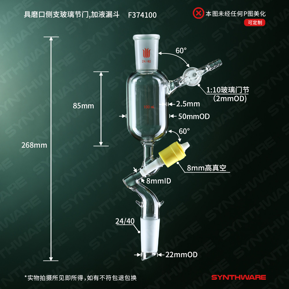 具磨口侧支玻璃节门,加液漏斗,内19/22,100ml F379100