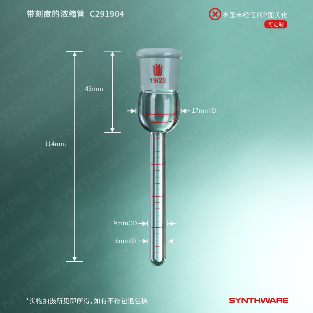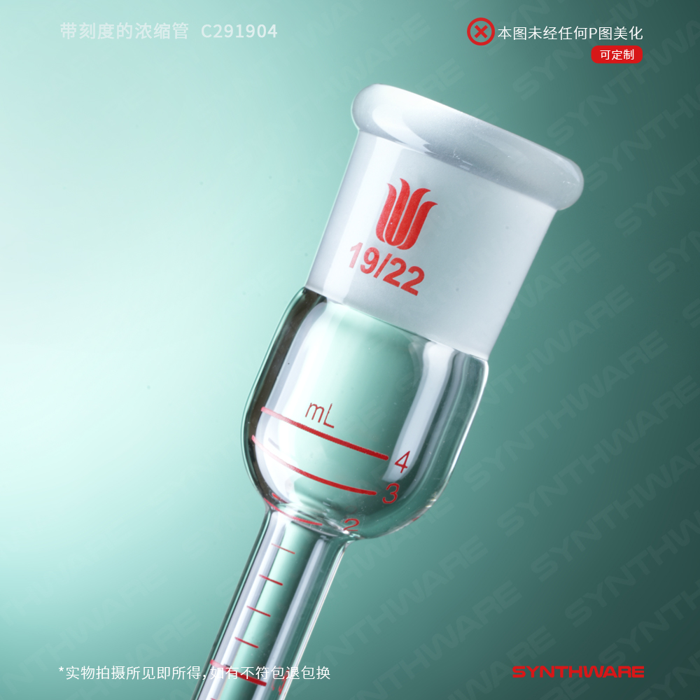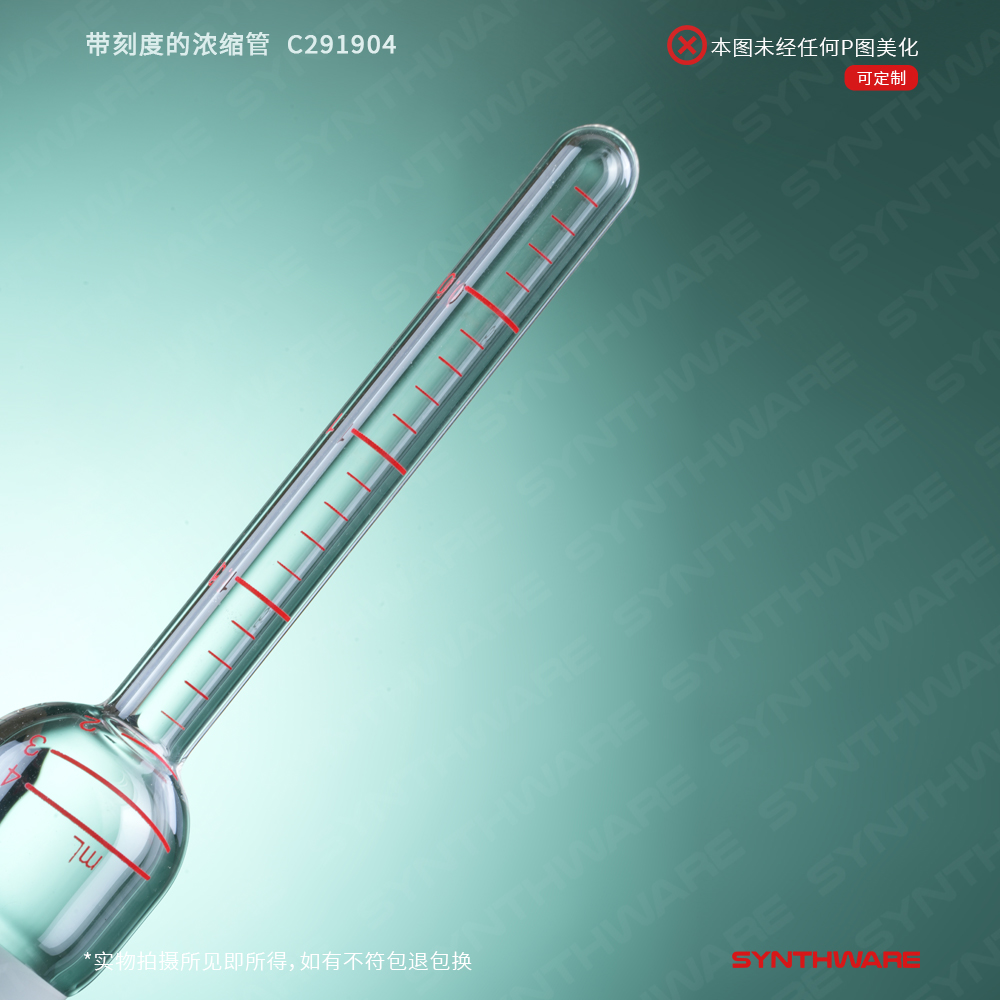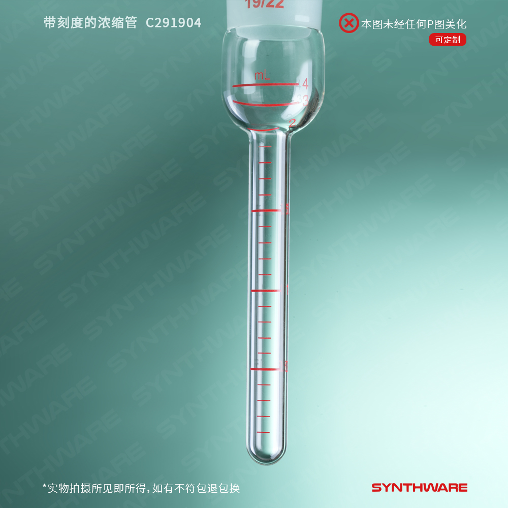 与Kuderna-Danish蒸发设备配套使用。4ml与10ml的浓缩管全长为100mm,25ml浓缩管全长为170mm.