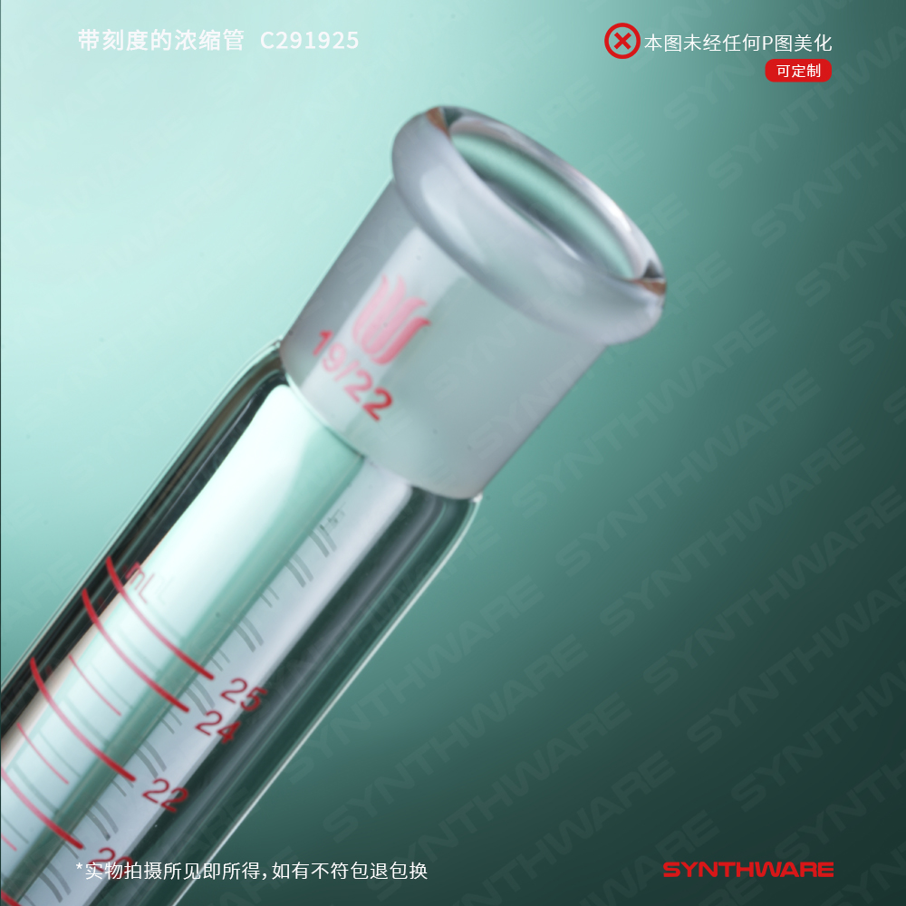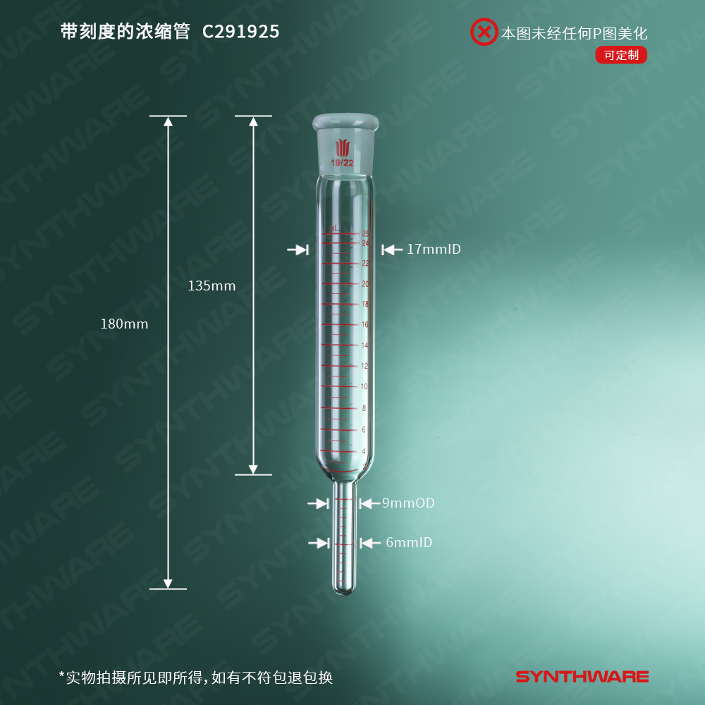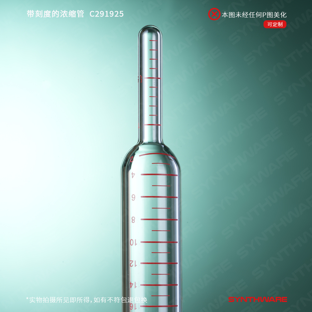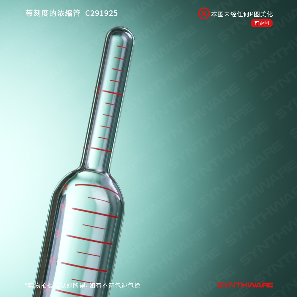 与Kuderna-Danish蒸发设备配套使用。4ml与10ml的浓缩管全长为100mm,25ml浓缩管全长为170mm.