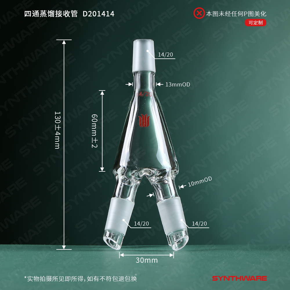 四通蒸馏接收管,阳磨口:14/20,图中下半部分,上部是A551420单买 D201414