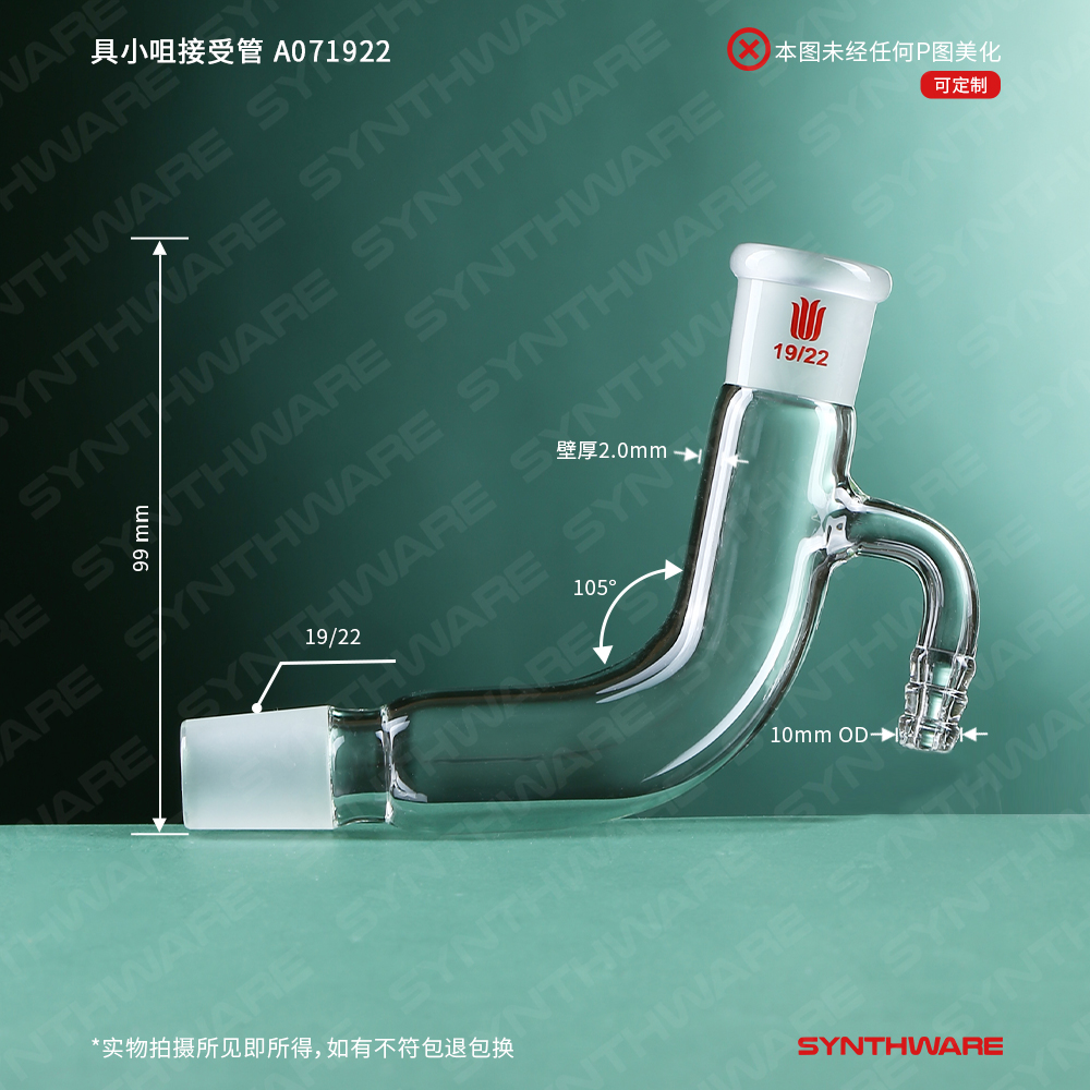 75°蒸馏头,上磨口:19/22,下磨口:19/22,侧磨口:19/22 A351922