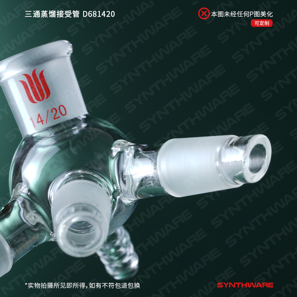 三通蒸馏接受管,具小咀,磨口:14/20 D681420