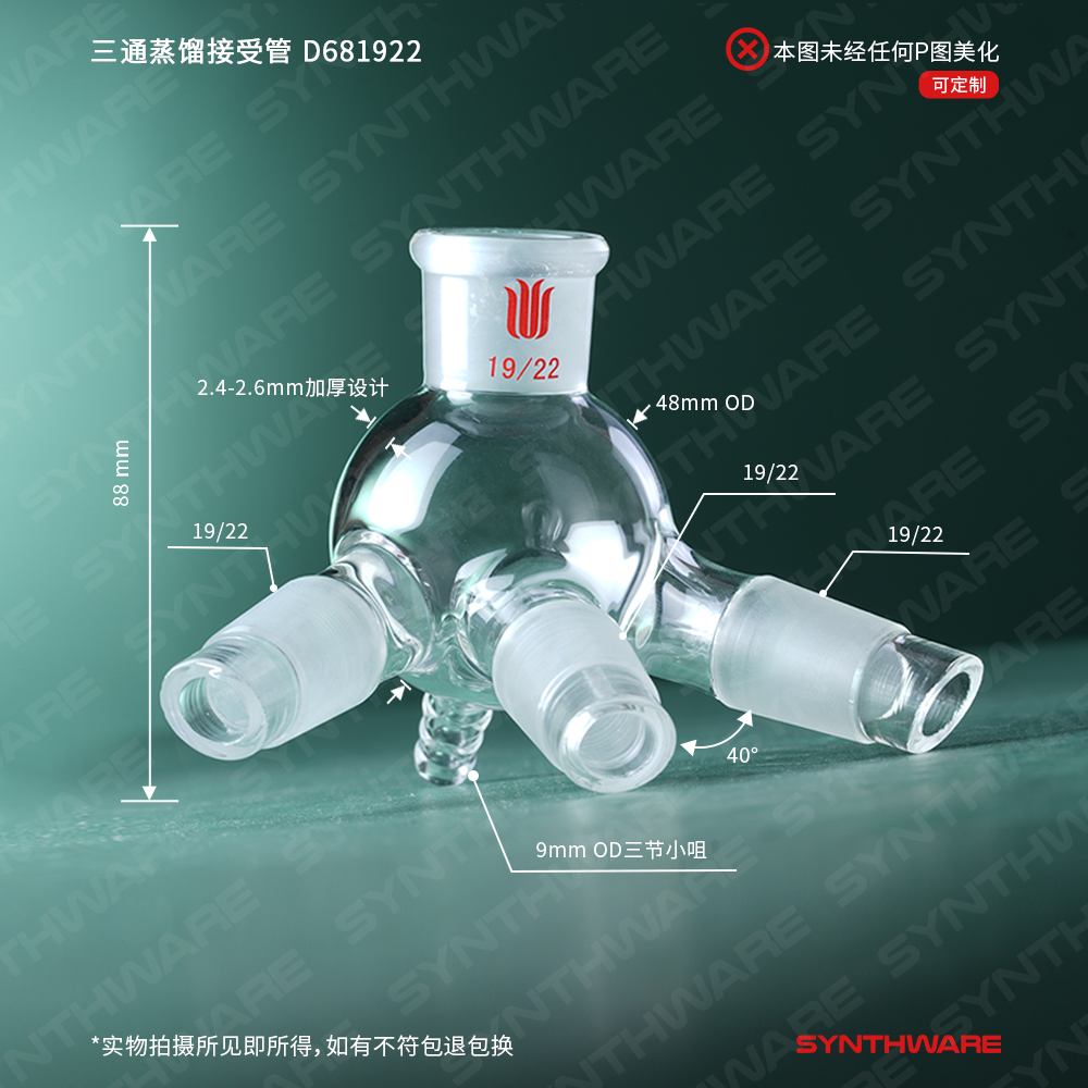 三通蒸馏接受管,具小咀,磨口:19/22 D681922