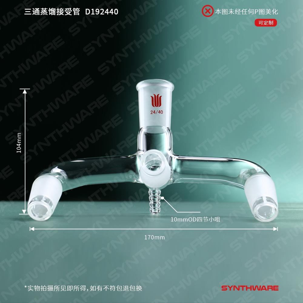 三通蒸馏接受管,具小咀,磨口:24/40 D192440