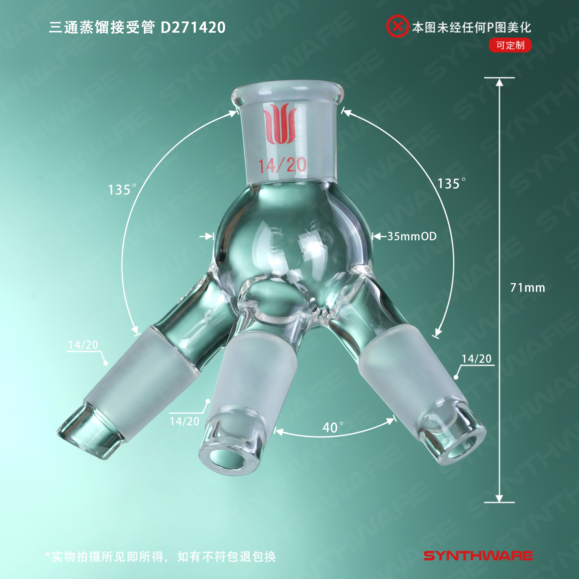 上磨口与三个下磨口之间的夹角为135°, 相邻的流出口夹角为40°