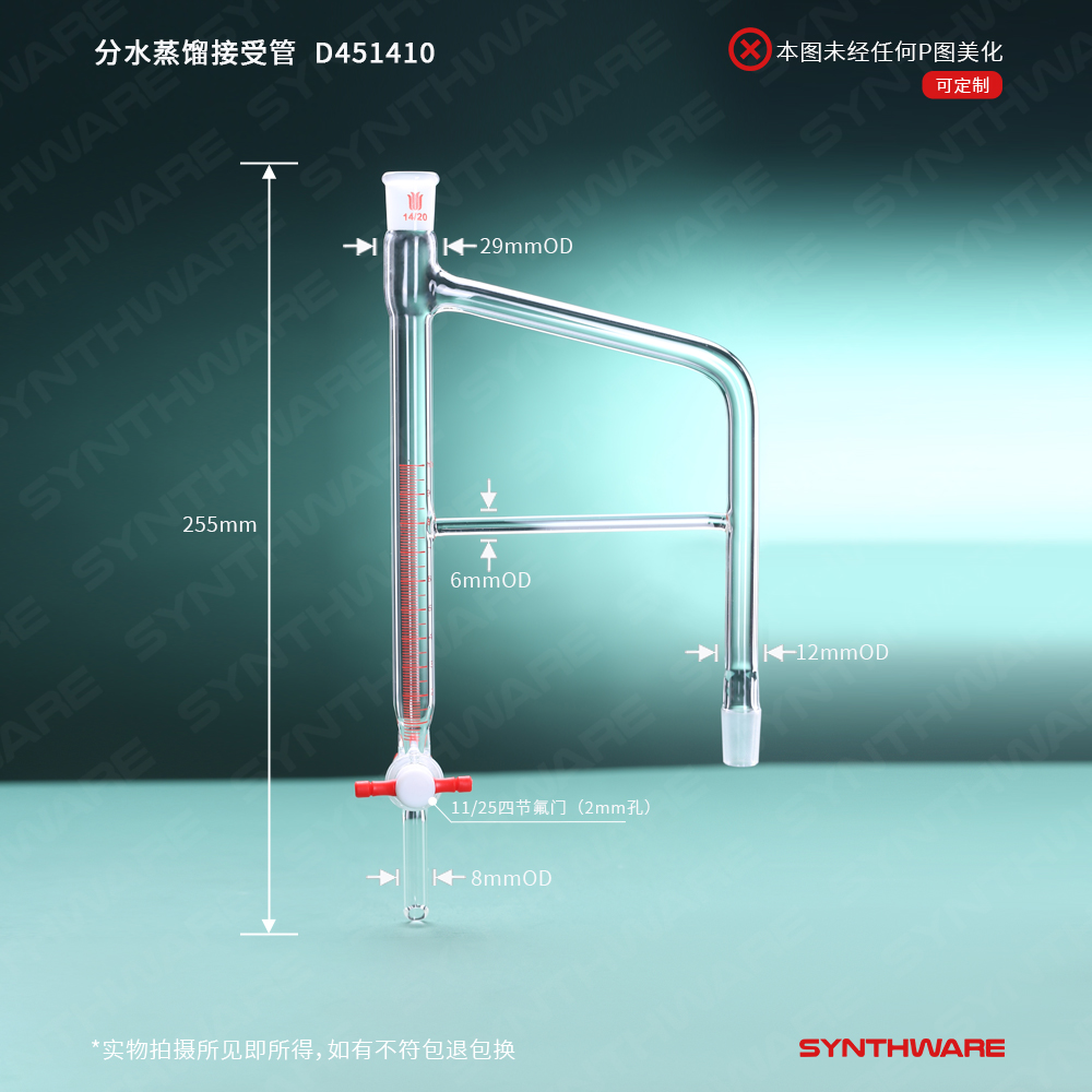 用于分离反应体系或蒸馏体系中的水,带2mm孔径的四氟节门。