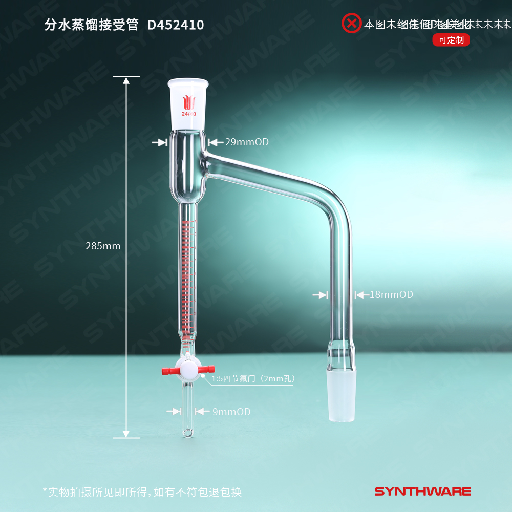 用于分离反应体系或蒸馏体系中的水,带2mm孔径的四氟节门。