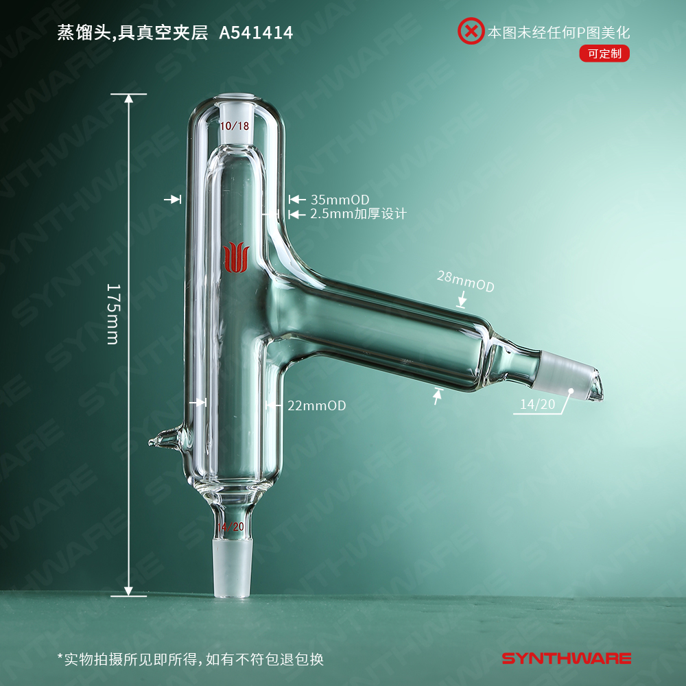 蒸馏类 > 蒸馏头 > 具真空夹层蒸馏头 > SYNTHWARE > 蒸馏头,具真空夹层,上磨口:10/18,其它磨口:14/20 A541414