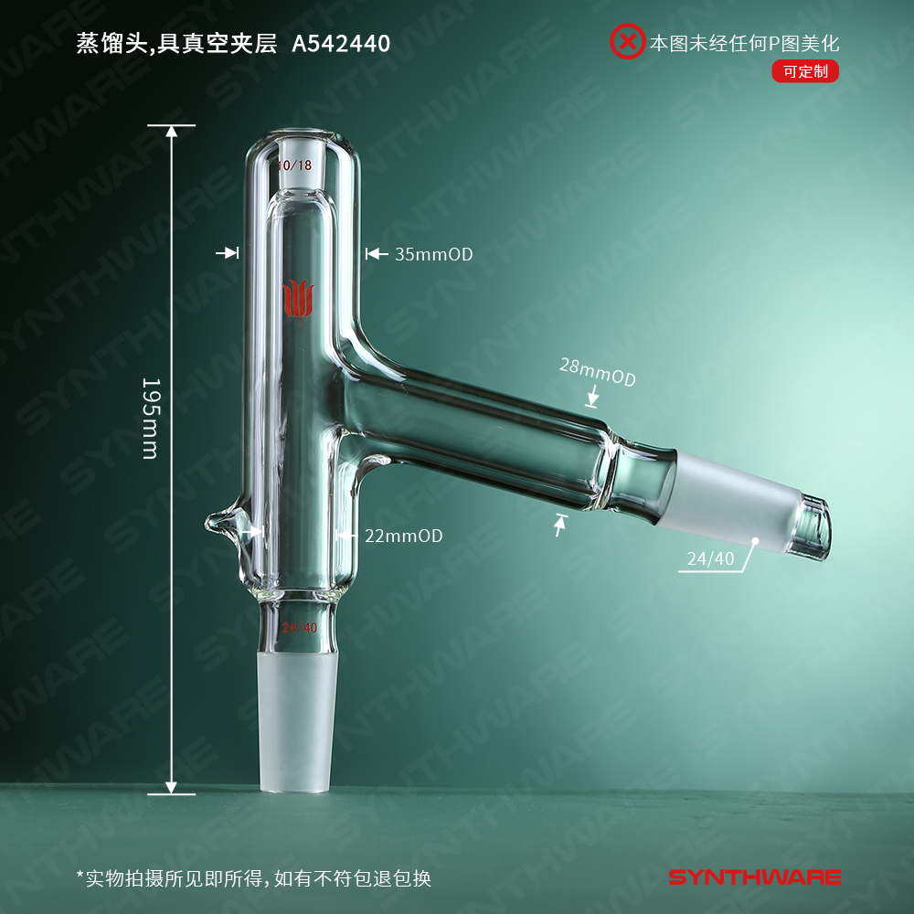 蒸馏类 > 蒸馏头 > 具真空夹层蒸馏头 > SYNTHWARE > 蒸馏头,具真空夹层,上磨口:10/18,其它磨口:24/40 A542440