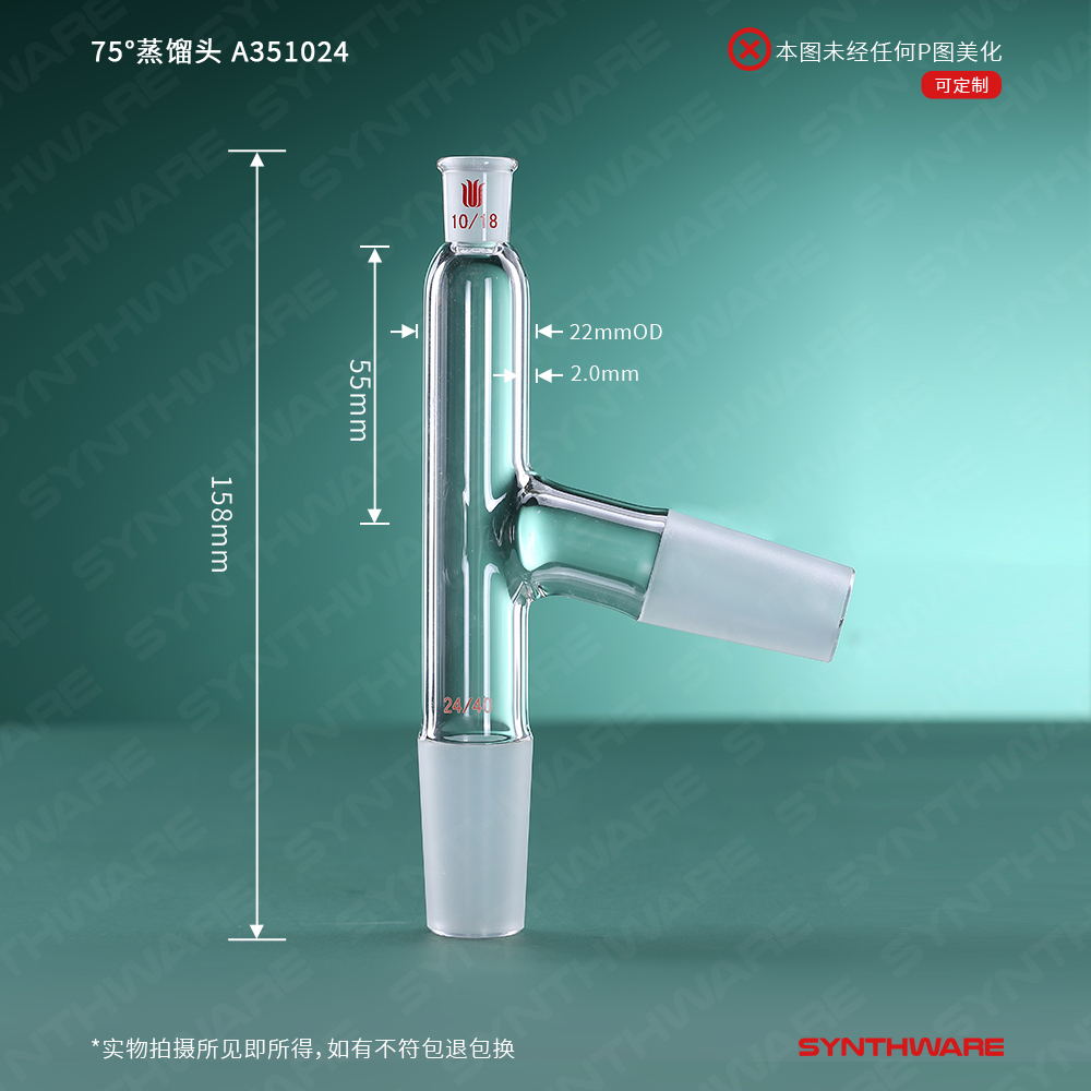 # 侧支管呈 75º 角,为标准锥度外磨口,由无心磨精密研磨,密封性有保障,可连接冷凝器。