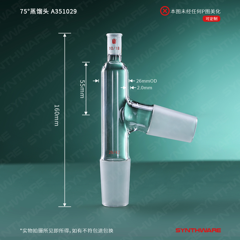 # 侧支管呈 75º 角,为标准锥度外磨口,由无心磨精密研磨,密封性有保障,可连接冷凝器。