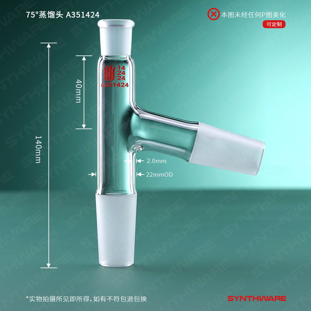# 侧支管呈 75º 角,为标准锥度外磨口,由无心磨精密研磨,密封性有保障,可连接冷凝器。