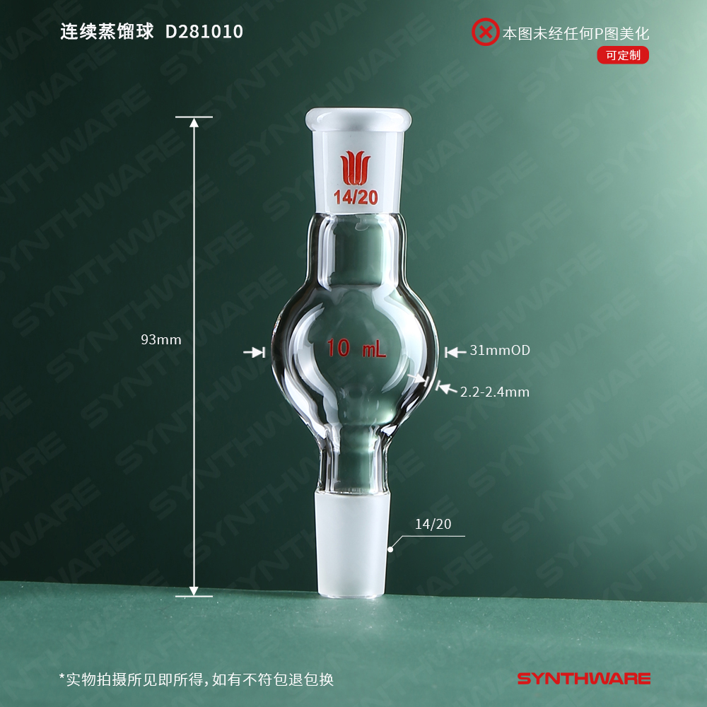 连续蒸馏球,14/20,10ml,球外径:31mm,总高:85mm D281010