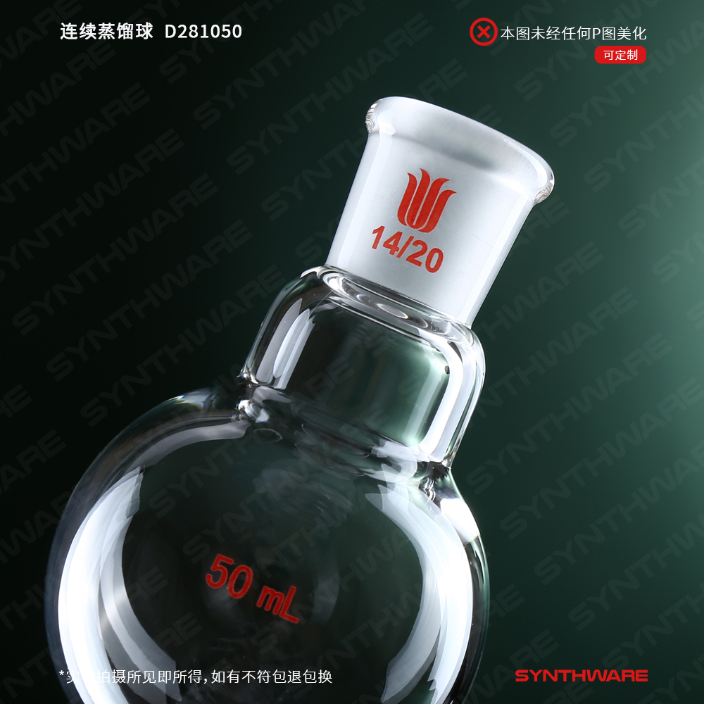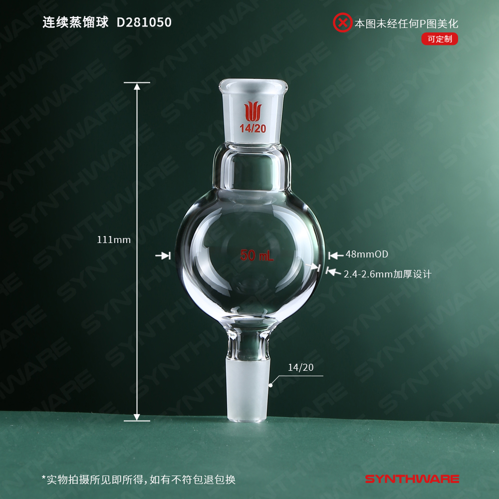 连续蒸馏球,14/20,50ml,球外径:48mm,总高:105mm D281050