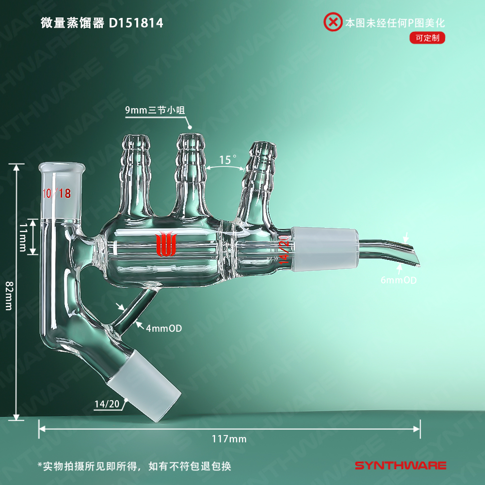 用于小剂量物质的蒸馏。一体化设计,使操作更简单,蒸馏效果更好,可与伸入量为25mm的温度计和三通蒸馏接受管配套使用,这样可使馏分再不沾壁的情况下直接滴入接受瓶。
