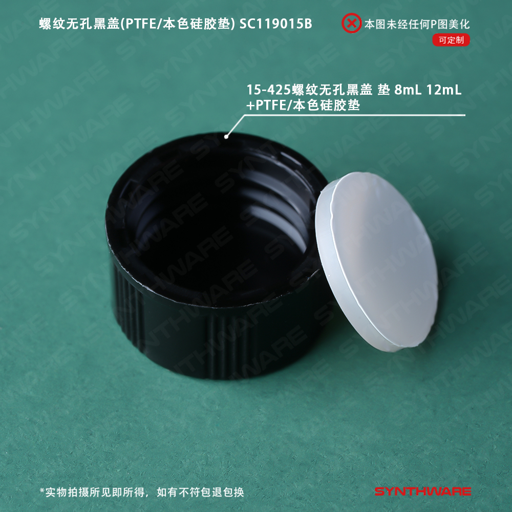 15-425螺纹无孔黑盖 垫 8mL 12mL(PTFE/本色硅胶垫)100个/套 SC119015B