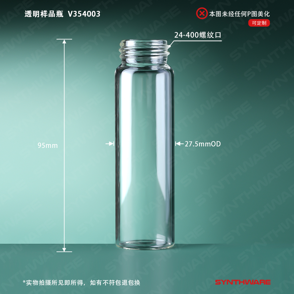 24/400螺纹口透明玻璃样品瓶,40mL,27.5*95mm,10个/包 V702440-10