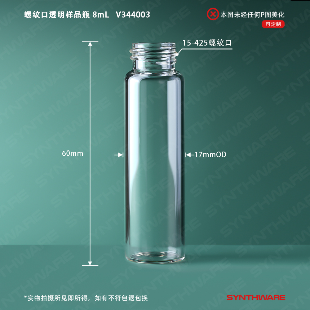 15-425螺纹口透明样品瓶 8mL 100个/包 17*60mm V344003