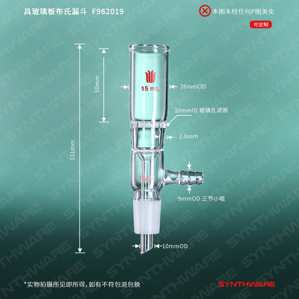 具玻璃板布什漏斗,容量:15ml,磨口:19/22 F962019