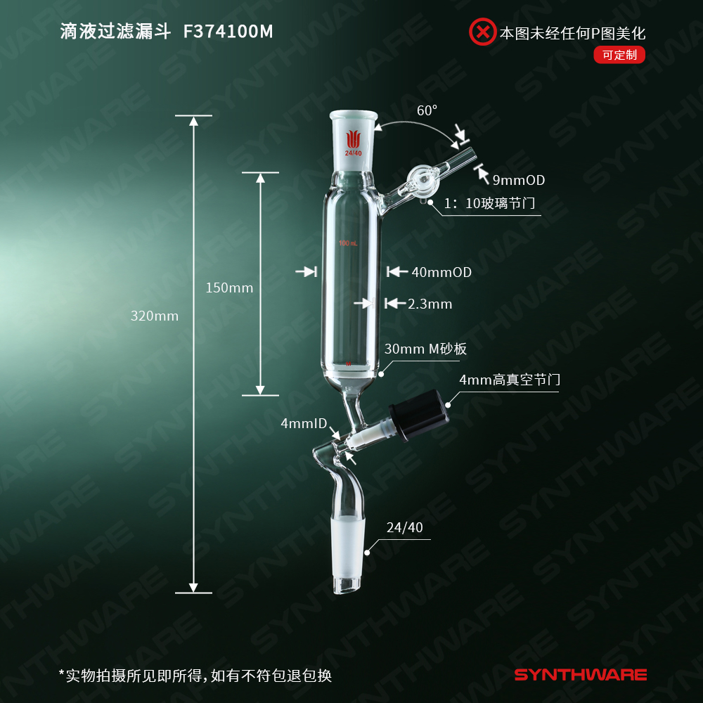 滴液过滤漏斗,过滤器4mm高真空阀,内24/40,100ml,G2 F374100C