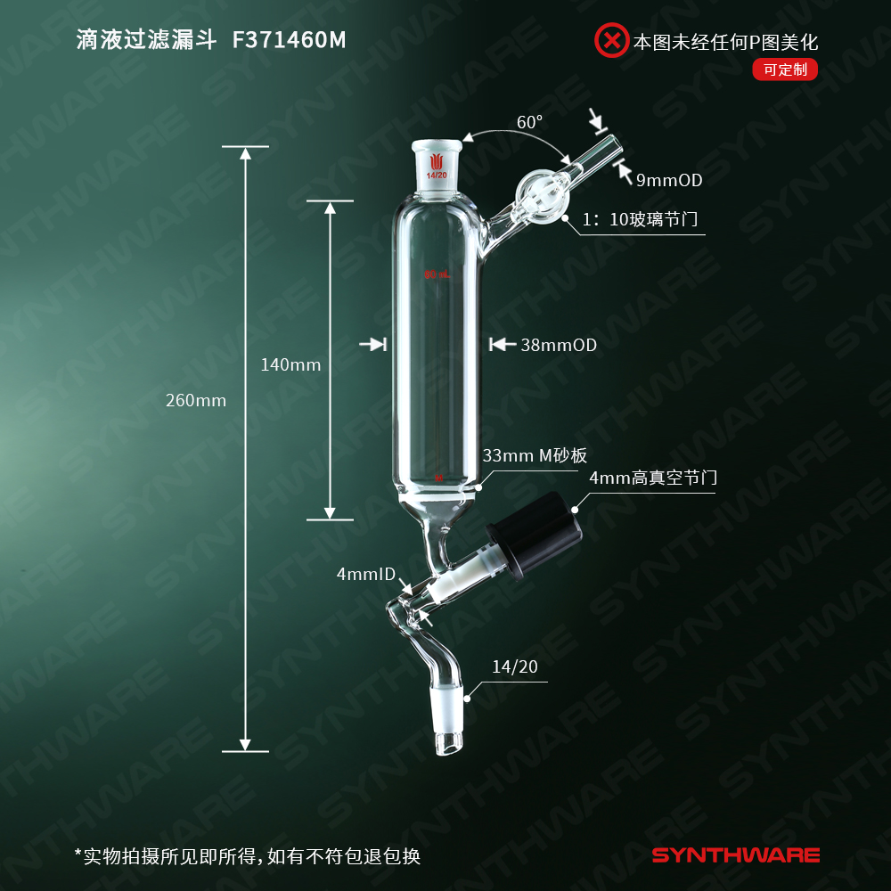 滴液过滤漏斗,过滤器4mm高真空阀,内14/20,60ml,G2 F371460C