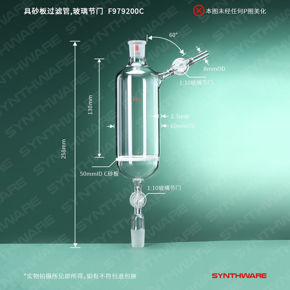 具砂板过滤管,玻璃节门,19/22,200ml,G2 F979200C