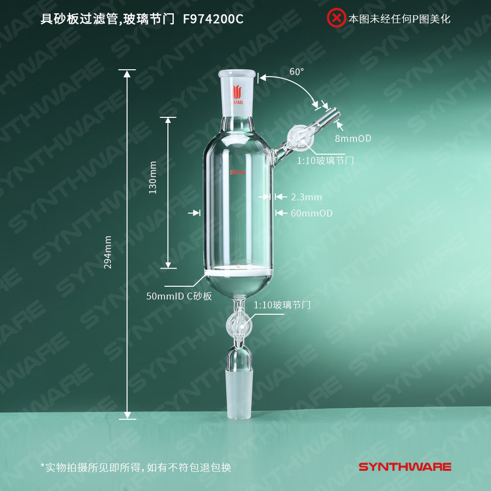 具砂板过滤管,玻璃节门,24/40,200ml,G2 F974200C