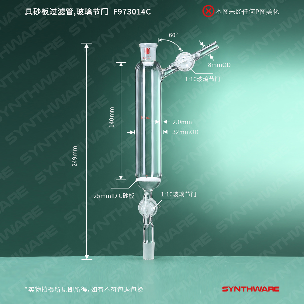 具砂板过滤管,玻璃节门,14/20,60ml F973014C