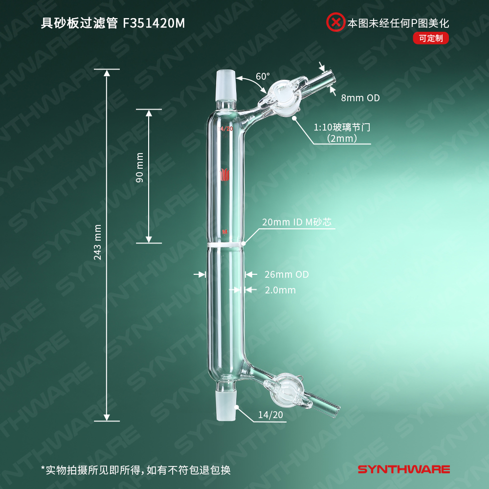 具砂板过滤管,2个玻璃节门,24/40 F352440M