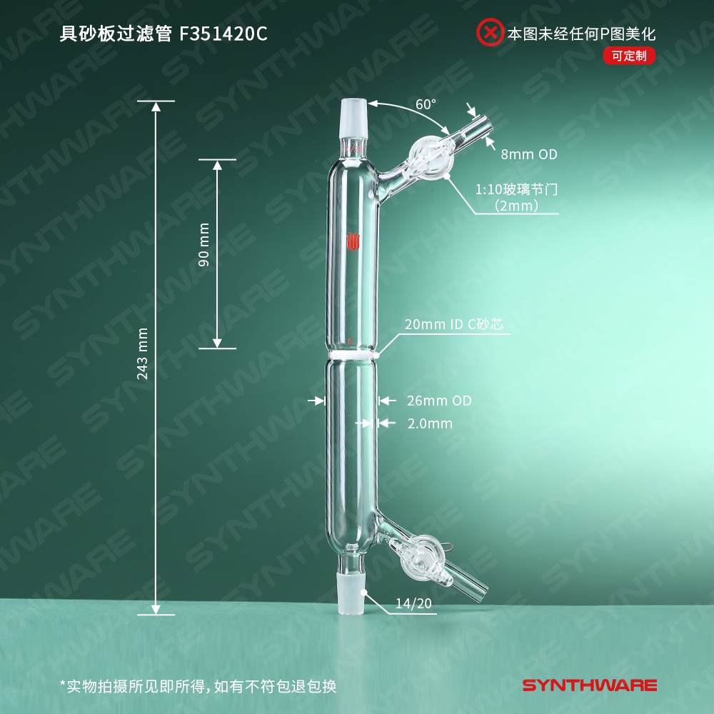 具砂板过滤管,2个玻璃节门,24/40 F352440C