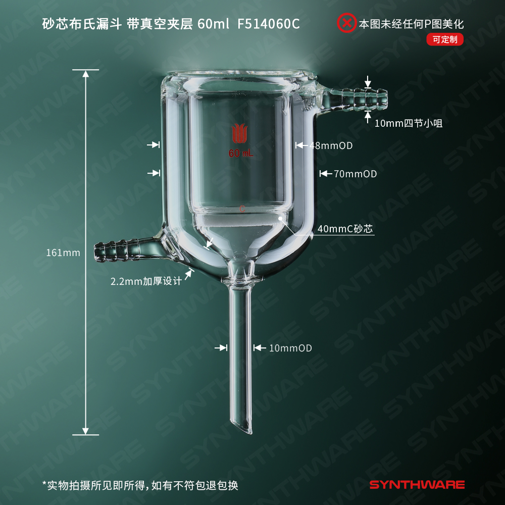 砂芯布氏漏斗,带真空夹层,60ml,G3 F514060M