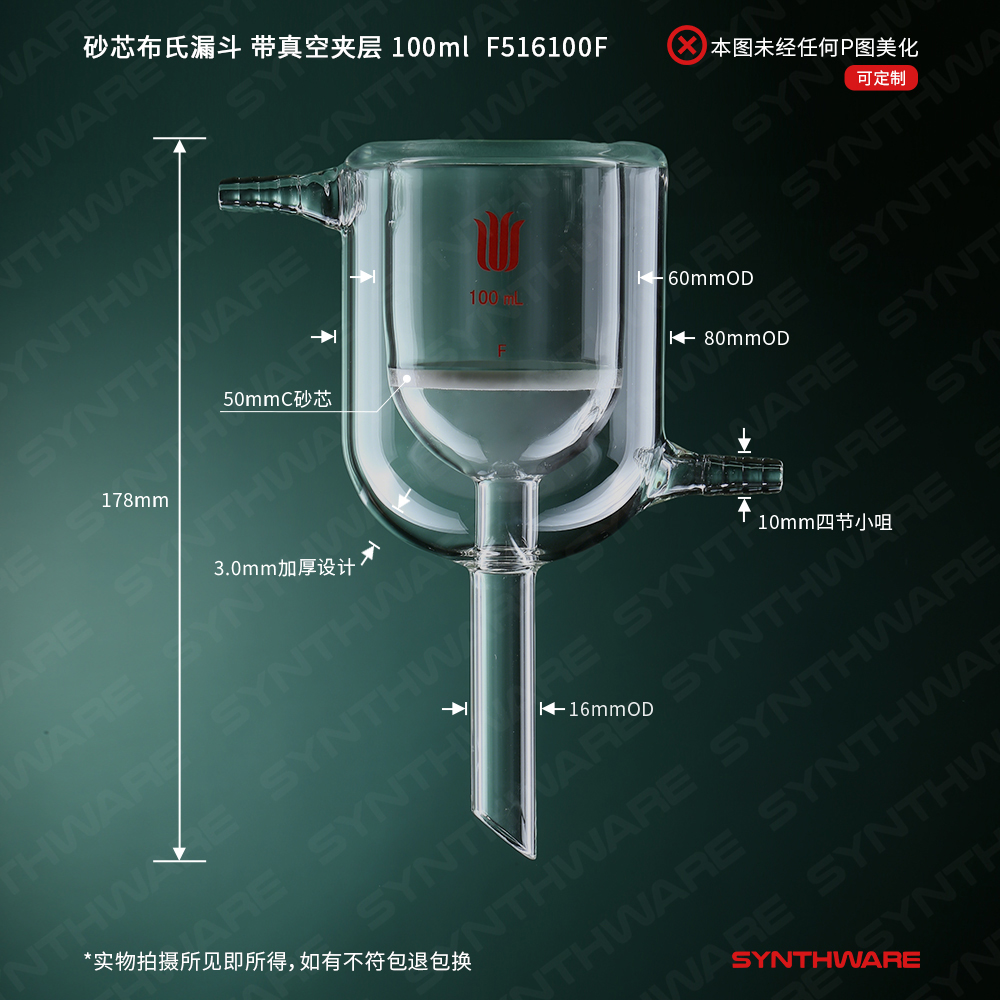 砂芯布氏漏斗,带真空夹层,100ml,G3 F516100M
